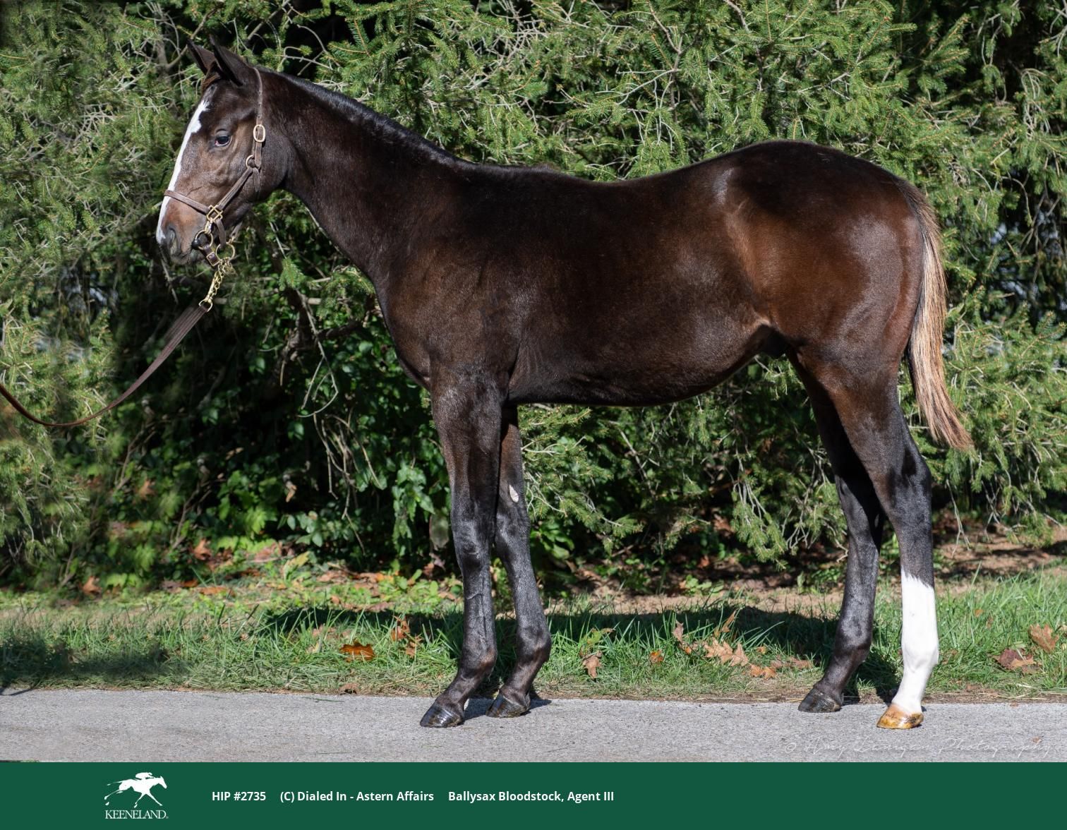 Starline Thoroughbreds made a strong presence as well, selecting six weanlings across multiple sessions. Their purchases included Hip 1715 in Session 5, a Flameaway colt acquired for $3,000 out of the Mizzen Mast mare Mercurial, producer of two winners. They followed with Hip 2176 for $5,000, a Vino Rosso filly out of the Speightstown mare Pilot Episode, a full sister to Canadian champion two-year-old filly and multiple graded stakes-placed Bold Script. In Session 7 they added Hip 2456 for $3,500, a colt by War of Will out of the Pioneer of the Nile mare Getting Lucky. Their Session 8 additions included Hip 2711 for $1,500, a colt by Thousand Words out of Wicked Tap, a Pleasant Tap mare and producer of five winners including Undecoded ($159,967); Hip 2735 for $1,500, a Dialed In colt and first foal out of the Astern mare Astern Affairs; and Hip 2801 for $1,200, a filly by Global Campaign out of the Ghostzapper mare Espiritu.