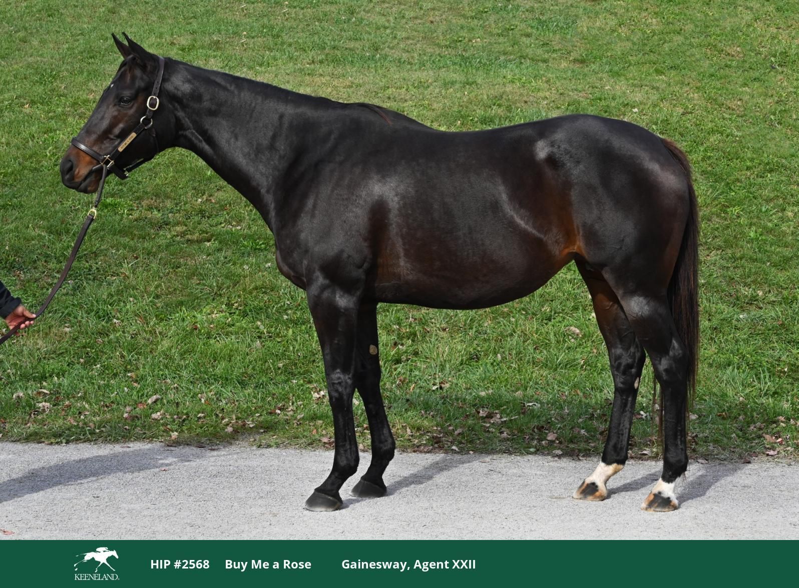 The Violence daughter, Buy Me A Rose, is out of Crafty Friend daughter, Foxy Friend, producer of six winners including proven producer Tap for Luck ($129,565). A son of Medaglia d’Oro, Violence, is a G1 black type winner and sire of 51 black type winners, 2 champions and progeny earnings of over $54 Million. The six year old mare, Buy Me A Rose, is in foal to the Speightstown son, Olympiad.