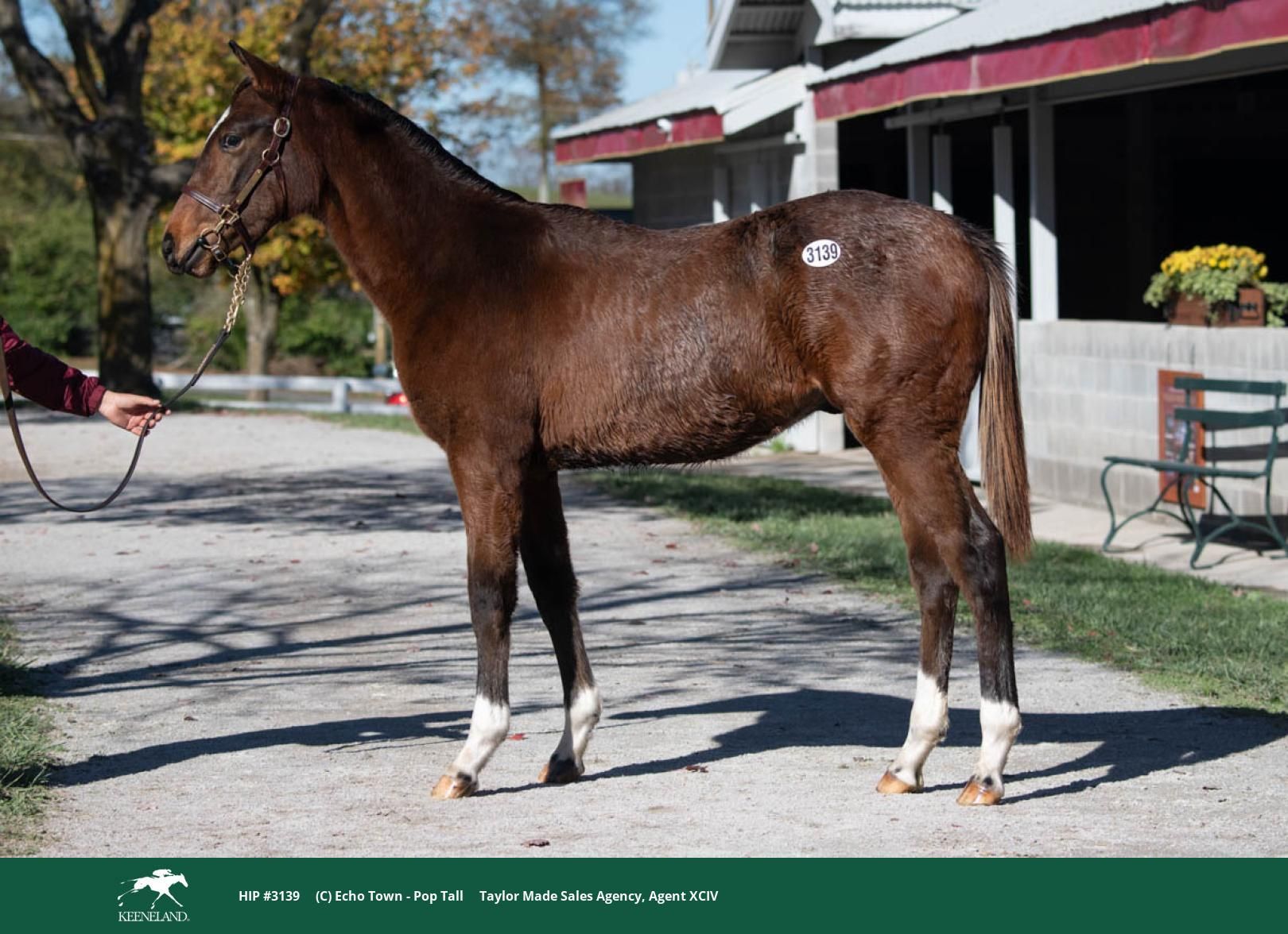 Don Gibb purchased the Echo Town weanling for $1500 out of the Revolutionary mare, Pop Tall. Echo Town is a black type winner of over $400,000 and a sire of winners, with first foals who are just two year olds of 2024 including Three Echoes ($125,300).
