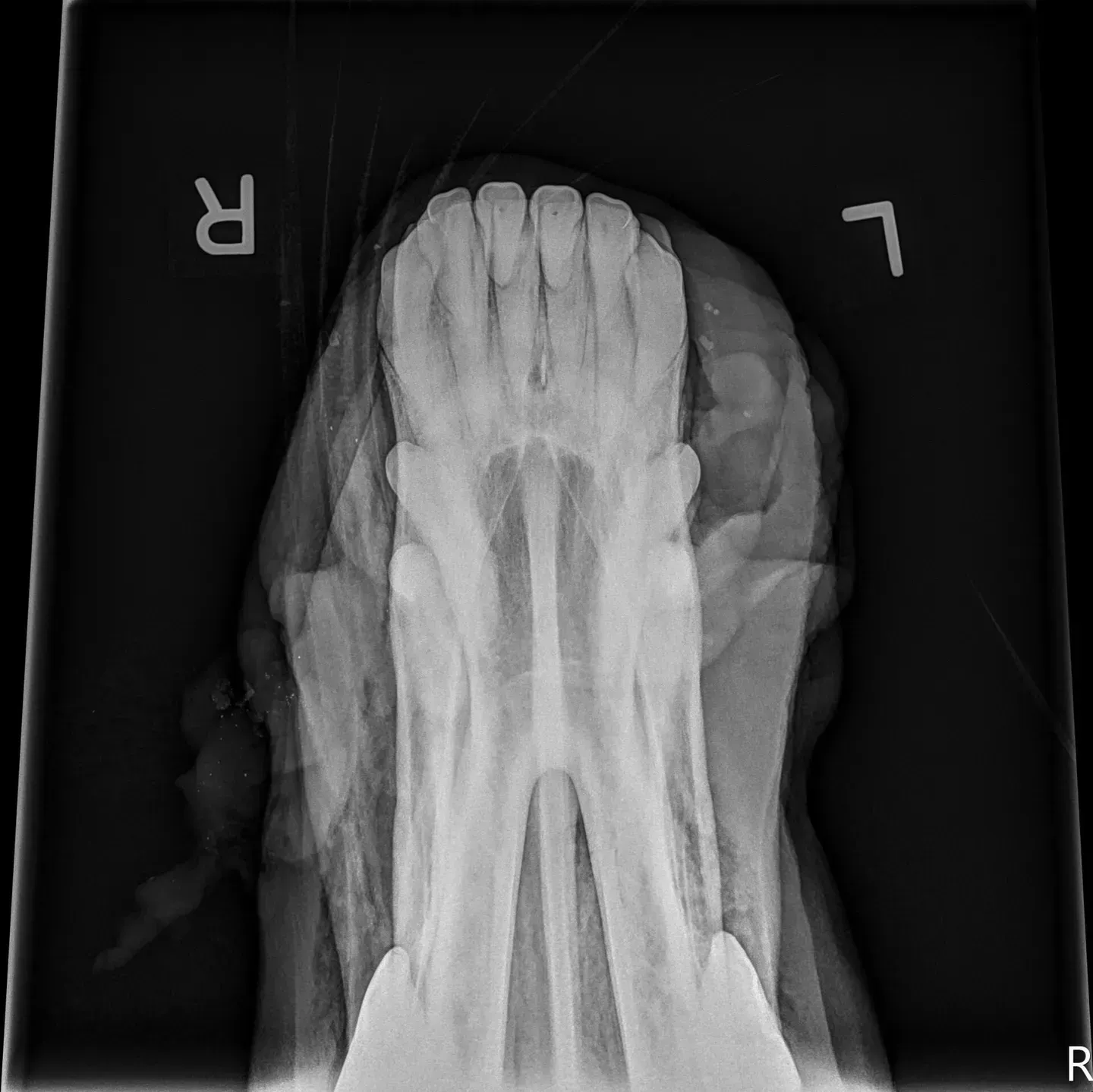 A microchip that is implanted in the nasal area (upper midline frenulum with the microchip ending up in the rostral interincisive canal) will appear on the X-Rays as a grain of rice.