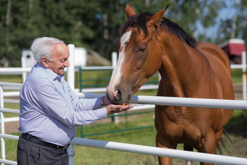 Barb and Al’s love of horses first emerged in the 1970’s when they became a major sponsor on the professional Chuckwagon circuit. Later the couple’s enthusiasm for thoroughbred racing yielded much joy and numerous accolades, including winning the 2010 Canadian Derby with Barb’s horse, “No Hesitation.” In his final days, Al was looking forward to training his most recent colts and strategizing with Barb for even more triumphs in upcoming racing seasons. Being from Saskatchewan, Al was always captivated by farming and in 1995 he acquired one just outside of Grande Prairie. With its horses, bison, birds, wildlife, and bountiful oat crop of 2023, Hilltop was his true paradise and playground. Home.